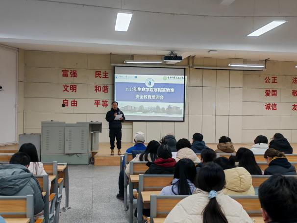 随后,学院组织召开了寒假实验室安全教育培训会。会议集中传达实验室安全相关要求,通报近期管理动态,并具体部署各项保障工作。实验中心主任冷非凡带领与会师生共同学习了学校实验室建设与管理处下发的《关于加强2026年寒假期间实验室安全工作的通知》,结合学院实际对重点内容作了细致解读,进一步统一思想认识,筑牢“安全第一、预防为主”的理念。