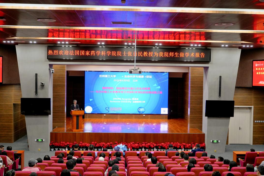 当天下午,张勇民院士在彭家坪校区问鼎堂106报告厅作题为《糖质密码:超越基因与蛋白的生命叙事》的学术报告,会议由兰州理工大学副校长郑小平主持,学校300余名师生参会。报告立足糖化学与新药研发前沿,阐释糖类分子在细胞识别、免疫应答与疾病发生中的关键作用。张院士结合自身科研成长经历,勉励青年学子坚定理想、刻苦拼搏奋斗、勇攀学术或工业的事业高峰。报告深入浅出,兼具学术深度与思想温度,现场互动热烈,师生反响良好。
