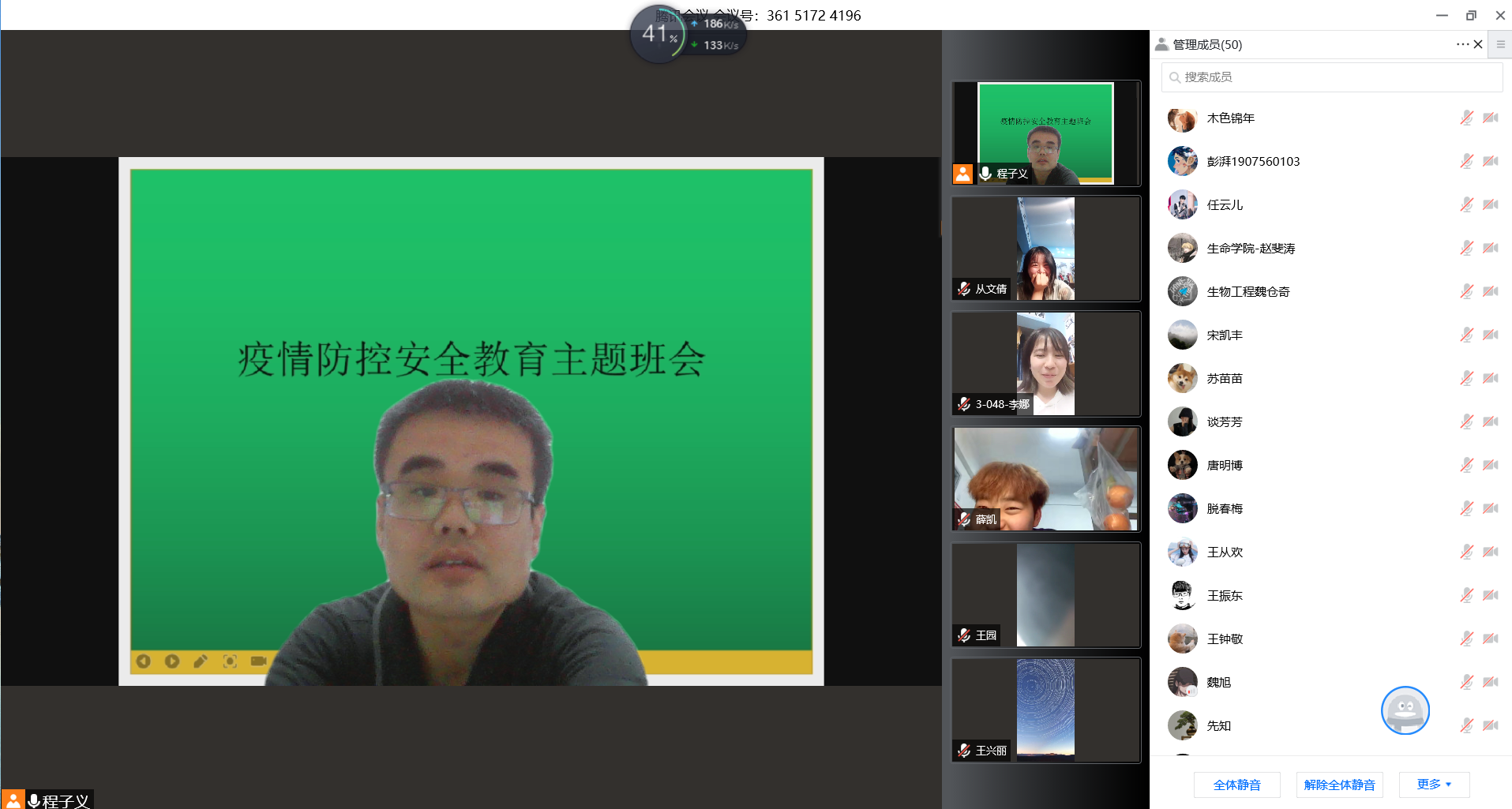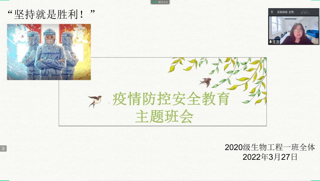 2022年3月27日晚,为了做好疫情防控工作,落实疫情防控责任,生命学院全院各班级分别在线上召开疫情防控安全教育的主题班会。