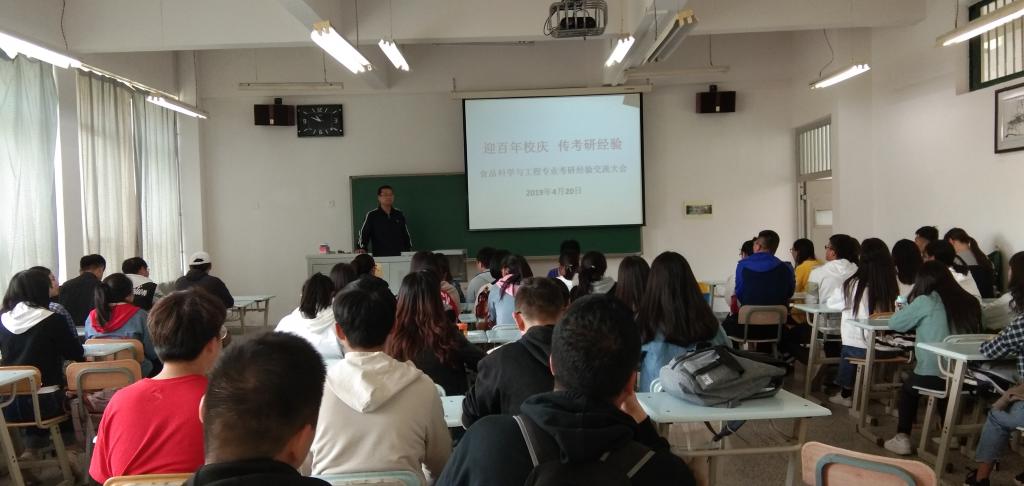 为增强2020届毕业生考研的信心、坚定其奋斗目标,食品科学与工程专业于4月20日在彭家坪校区举行了考研经验交流大会。邀请在2019年考研过程中取得优异成绩并有良好考研经验的同学与2020届准备参加考研的同学进行面对面交流。食品科学与工程系主任王雅老师和副主任张百刚老师参加了本次交流会。