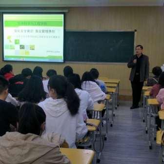 3月19日下午,我院实验中心组织即将进入实验室开展毕业论文实验的15级本科生、17级、18级研究生,在1号楼208教室举办实验室安全专题报告会。会议由主管实验室杨明俊院长主持,邀请学校实验室建设与管理处实验室安全管理人员郝大鹏老师对学生进行了安全培训。