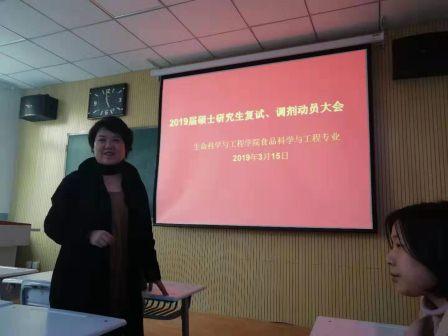 春暖花开,喜讯频传。在生命学院领导班子积极关心和食品科学与工程系全体师生的共同努力之下,2019届食品科学与工程专业本科生考研上线率再创新高,达到47.3%,较2018年增长近10个百分点,为历年之最。3月15日国家考研复试分数线公布后,系主任王雅副教授立即组织全体教师和考研学生进行研究生复试和调剂动员交流会。