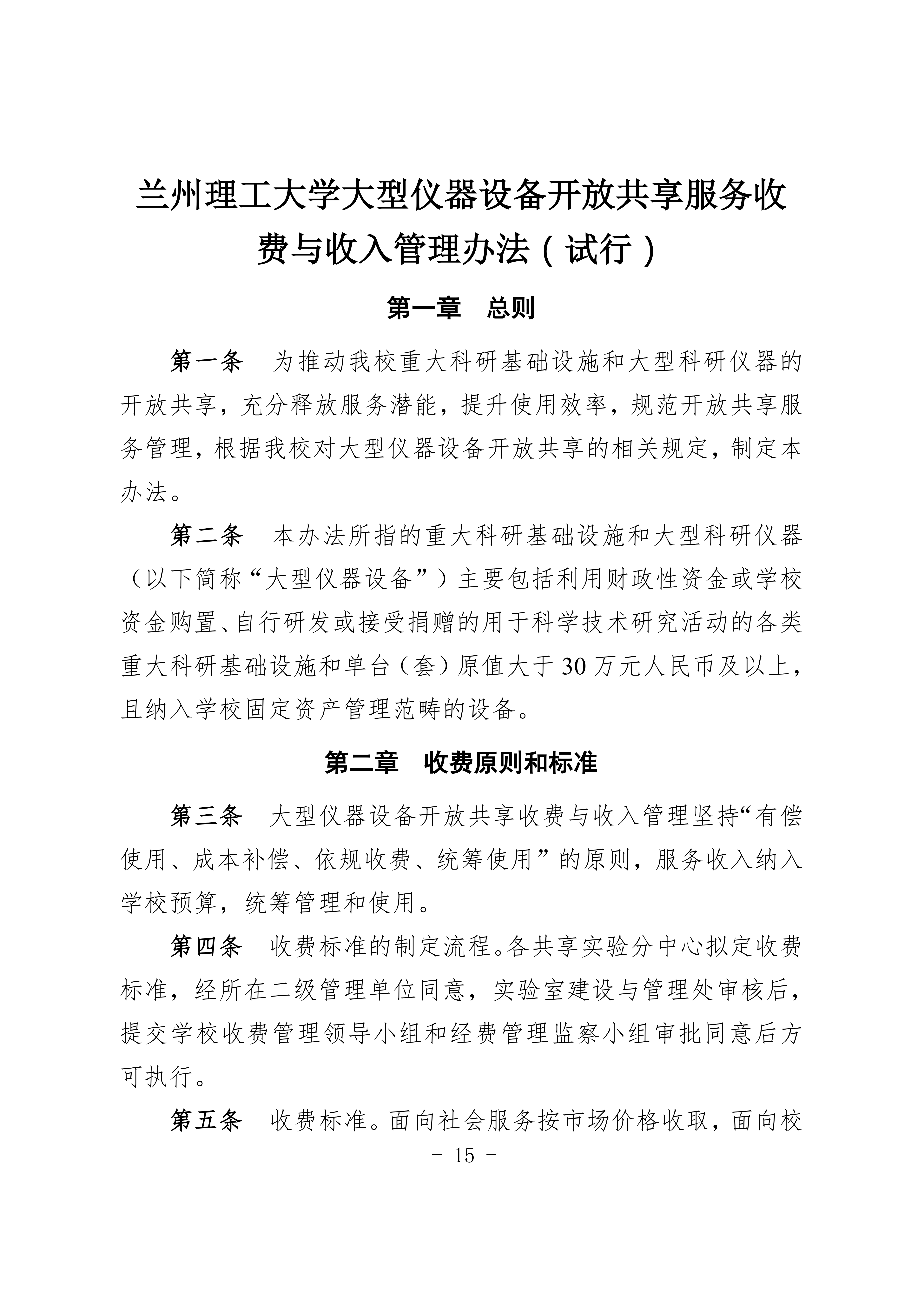 《兰州理工大学大型仪器设备开放共享服务收费与收入管理办法(试行)》