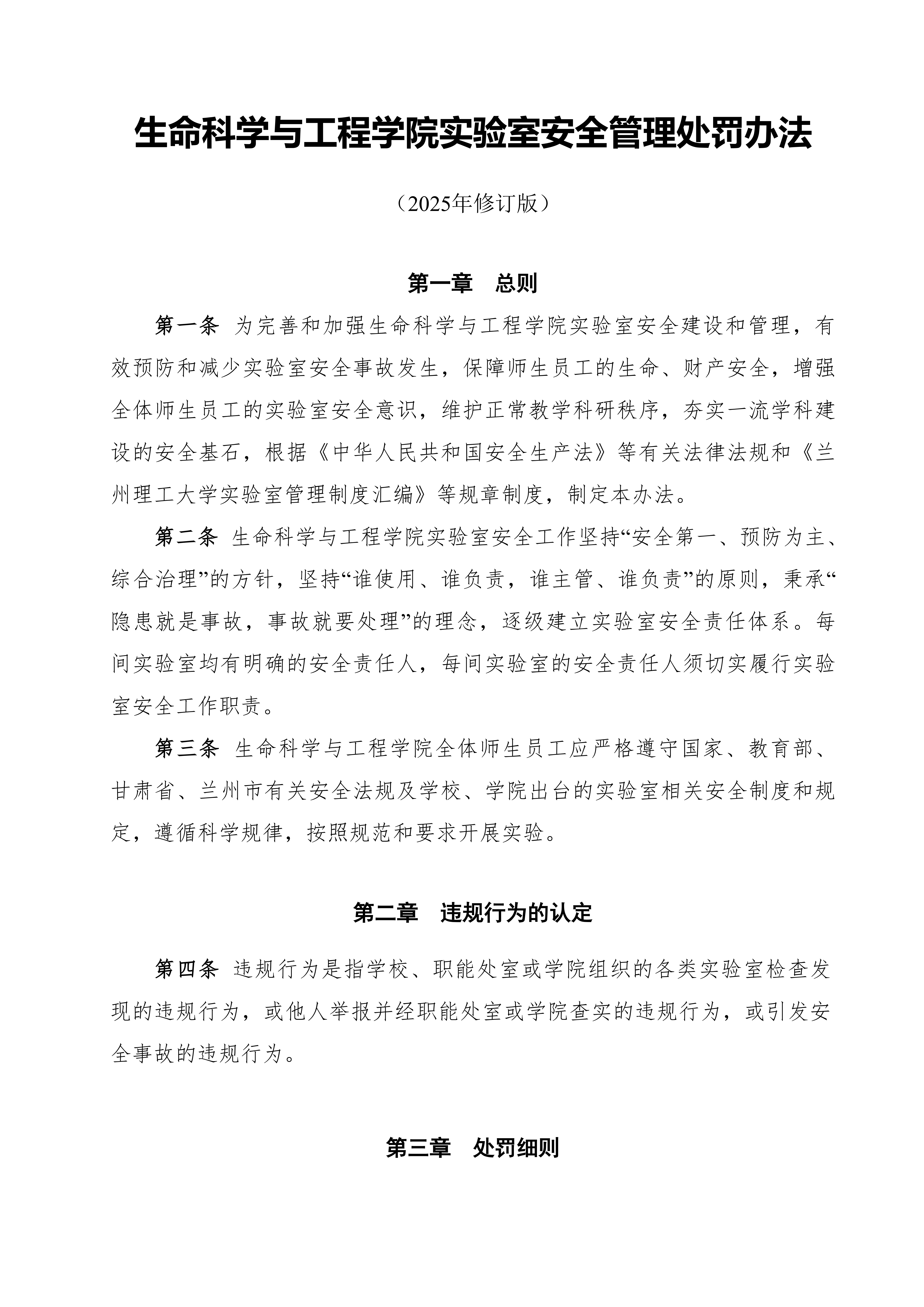 《生命科学与工程学院实验室安全管理处罚办法(2025年修订)》