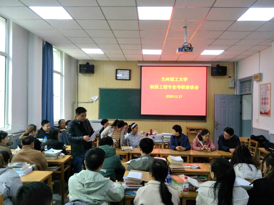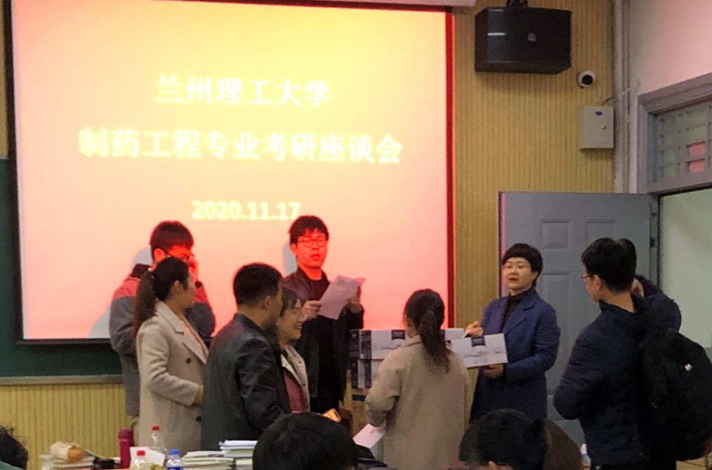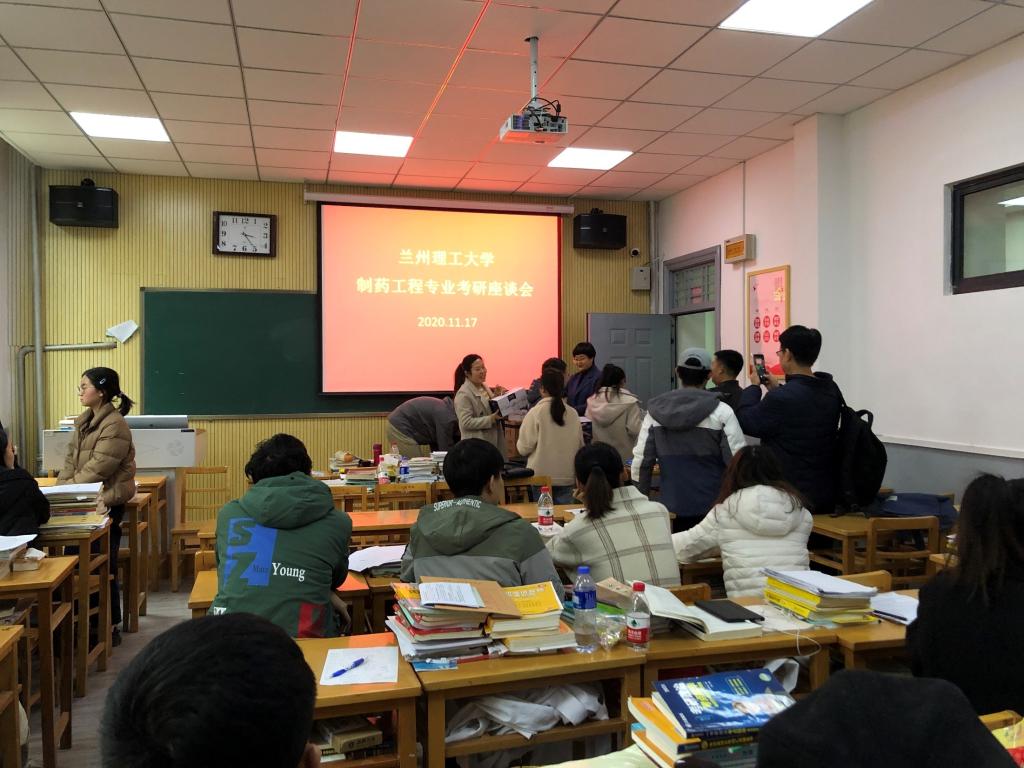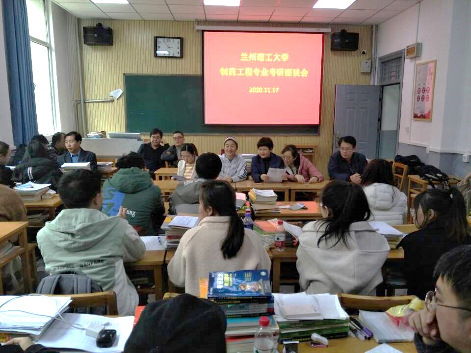 2020年11月17日下午14时30分,兰州理工大学生命科学与工程学院制药工程专业组织全系老师和2017级考研学子在校本部1号楼120教室召开了座谈会,并对备考学子进行了慰问关怀,助力他们考研成功。