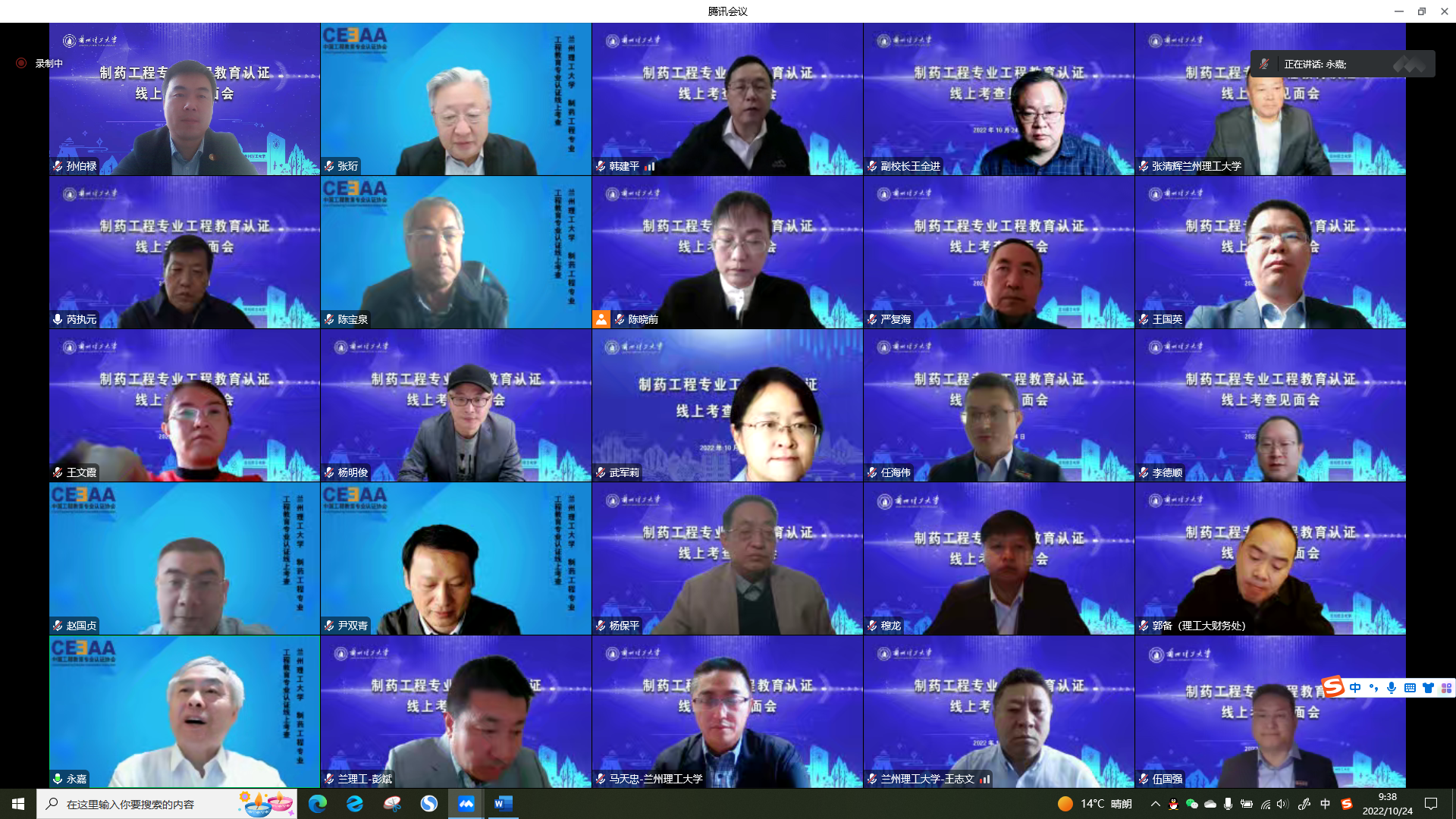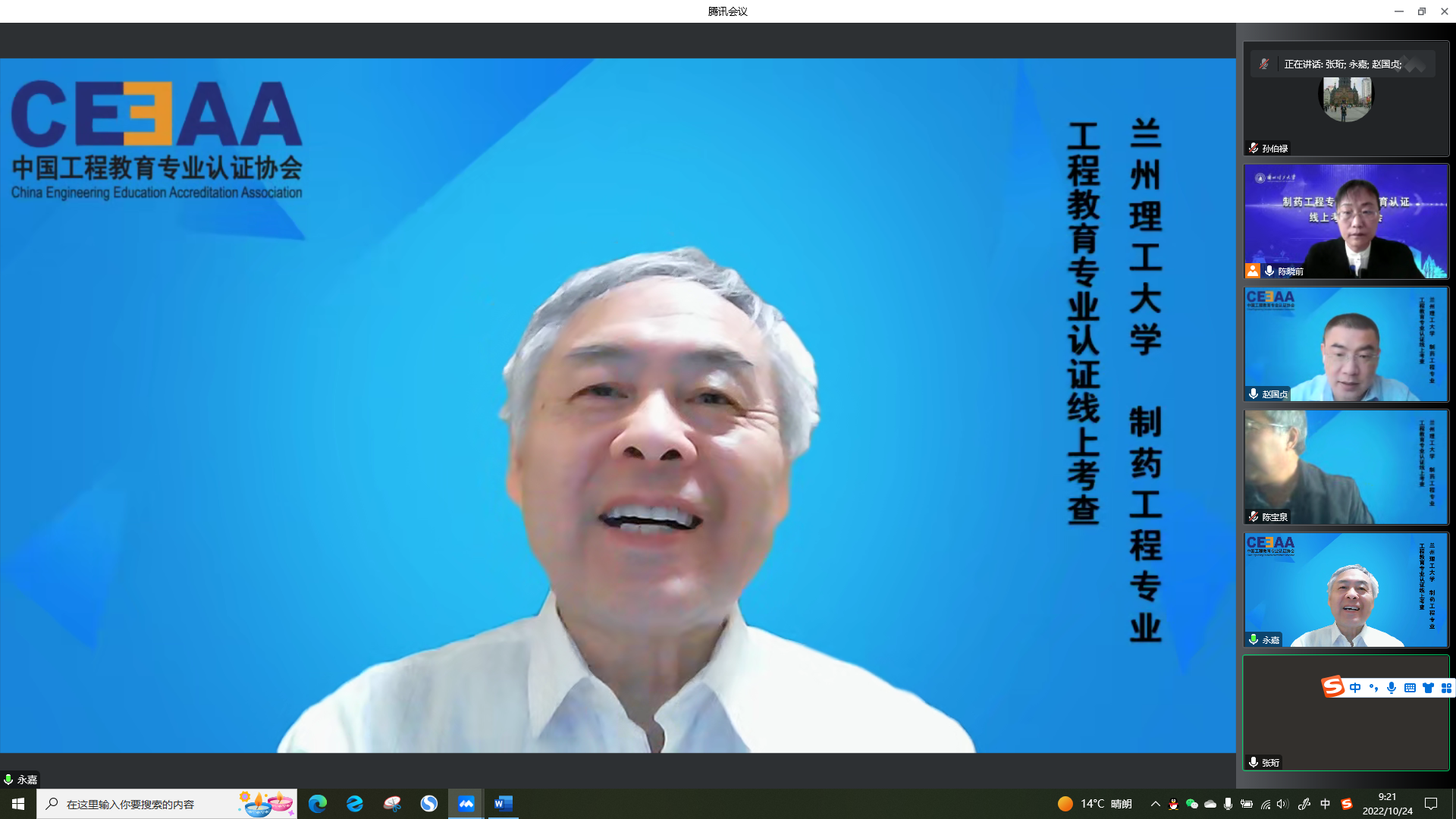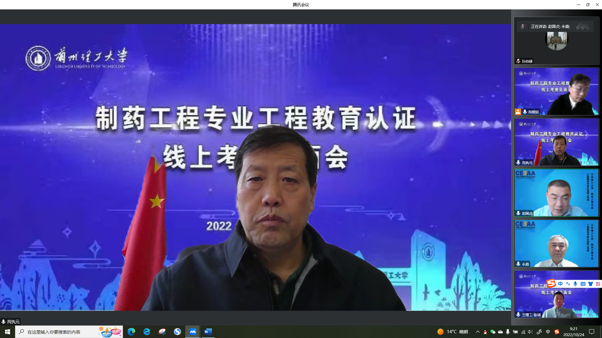 10月24日上午,兰州理工大学制药工程专业工程教育认证考查见面会在线上召开。专家组组长、华东理工大学沈永嘉教授,专家组成员、武汉工程大学张珩教授,安徽丰原药业股份有限公司尹双青教授级高工,天津理工大学陈宝泉正高级工程师,专家组秘书、太原理工大学赵国贞副教授,学校党委副书记、校长芮执元,副校长王全进,副校长李仁年以及教务处、人事处、财务处等相关职能部门主要负责人,生命科学与工程学院领导班子、专业负责人及专业全体教师出席了会议。会议由副校长王全进与专家组组长沈永嘉教授分阶段主持。