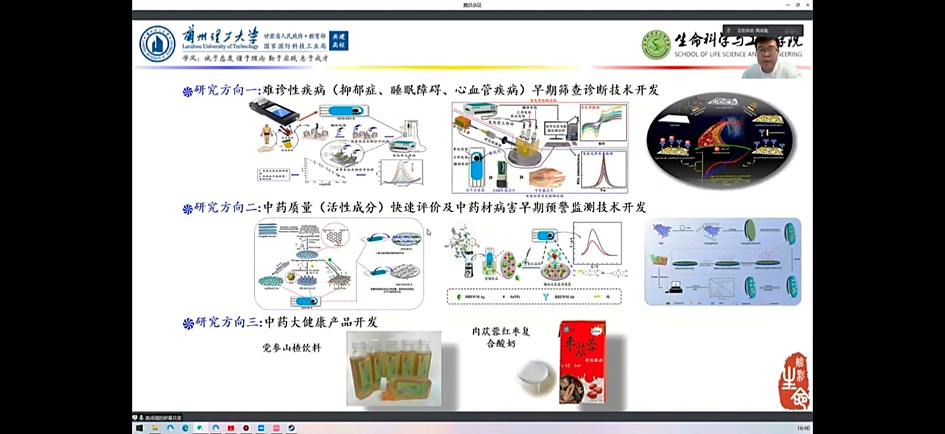 随后,2020级药学专业硕士研究生高成瑒结合目前开展的工作,做了题为“中药材根腐病早期预警及质量评价新技术研究”的报告,该工作介绍了电化学传感器技术在中药材病害标志物及基于指标性成分的中药材质量评价中的独特优势,分别就自己开展的“基于柔性电极的中药材根腐病早期预警电化学免疫传感器研究”、“用于板蓝根质量评价电化学传感器的研究”等工作做了详细的介绍。该项工作综合药学、电化学、材料学等知识,为中药材病害的早期预警及中药材质量即时评价和质量溯源研究做了前瞻性的探索工作,并在讨论环节与冷非凡副教授就研究的开展做了深入的讨论。冷非凡副教授基于目前的研究工作,对后续延展性、创新性工作提出了一些建设性问题和建议。
