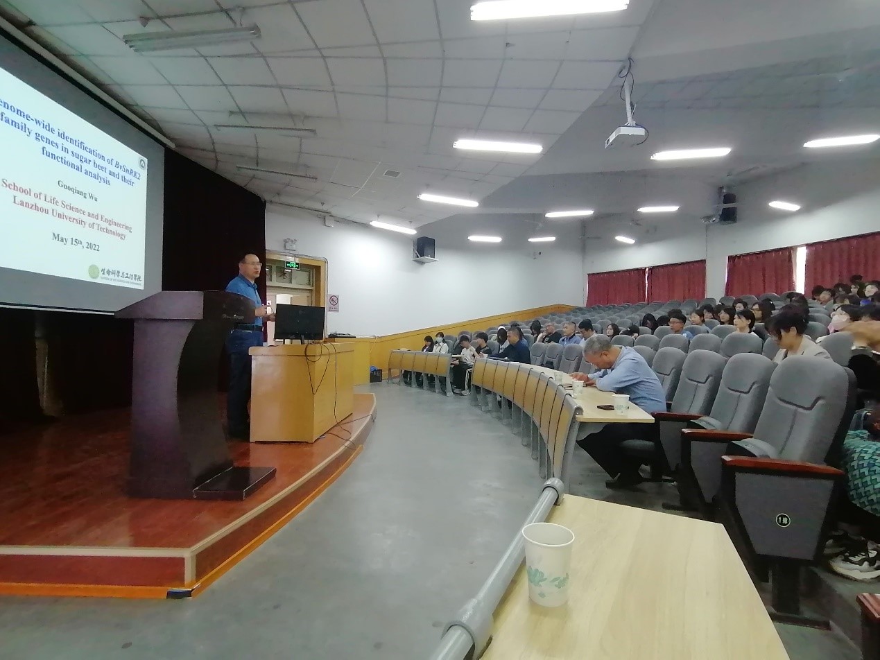 座谈会上,高潮书记对河西学院生命科学与工程学院的办学历史、学科建设、研究平台、成果产出、人才培养等作了介绍,并就目前学院学科建设、专业建设、人才培养等情况与伍国强等做了深入研讨。座谈会后,伍国强一行3人还参观了河西学院生命科学与工程学院标本馆、实验中心及祁连山菌物馆。随后,伍国强应邀为河西学院生命科学与工程学院的师生做了题为“Genome-wide identification of BvSnRK2 family genes in sugar beet and their functional analysis”的报告,并借此给听取报告会的老师和同学们介绍了兰州理工大学生命科学与工程学院的历史沿革、师资队伍、科学研究、学科发展、研究生招生等情况,同时诚邀老师和同学们来校指导交流和学习深造。